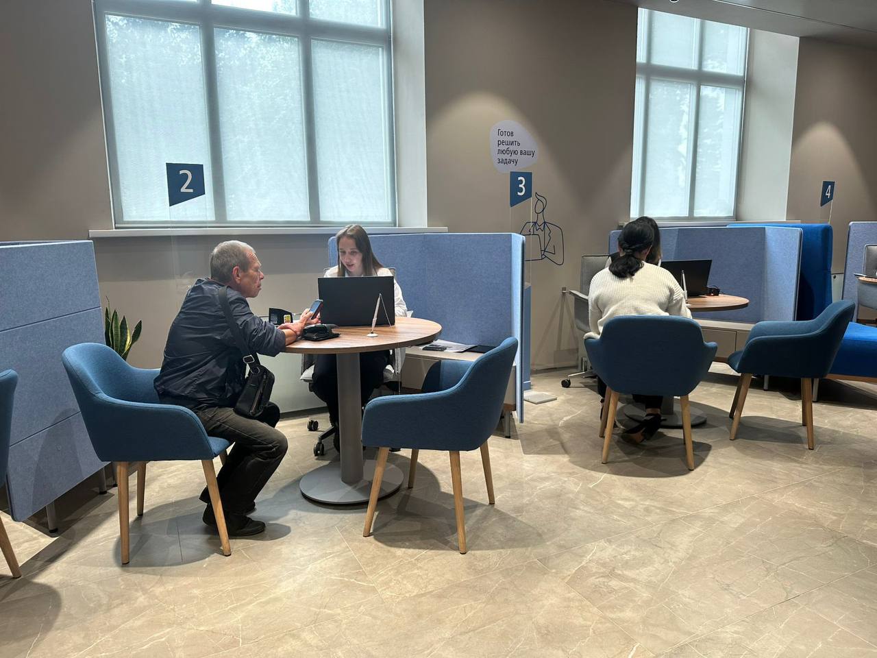 В отделении организованы комфортные клиентские зоны, конфиденциальные вопросы можно обсудить в переговорной комнате. Офис открыт по будням с 09:00 до 19:00, в субботу с 10:00 до 17:00, в воскресенье с 10:00 до 15:00. Банкоматы работают в режиме 24/7.
