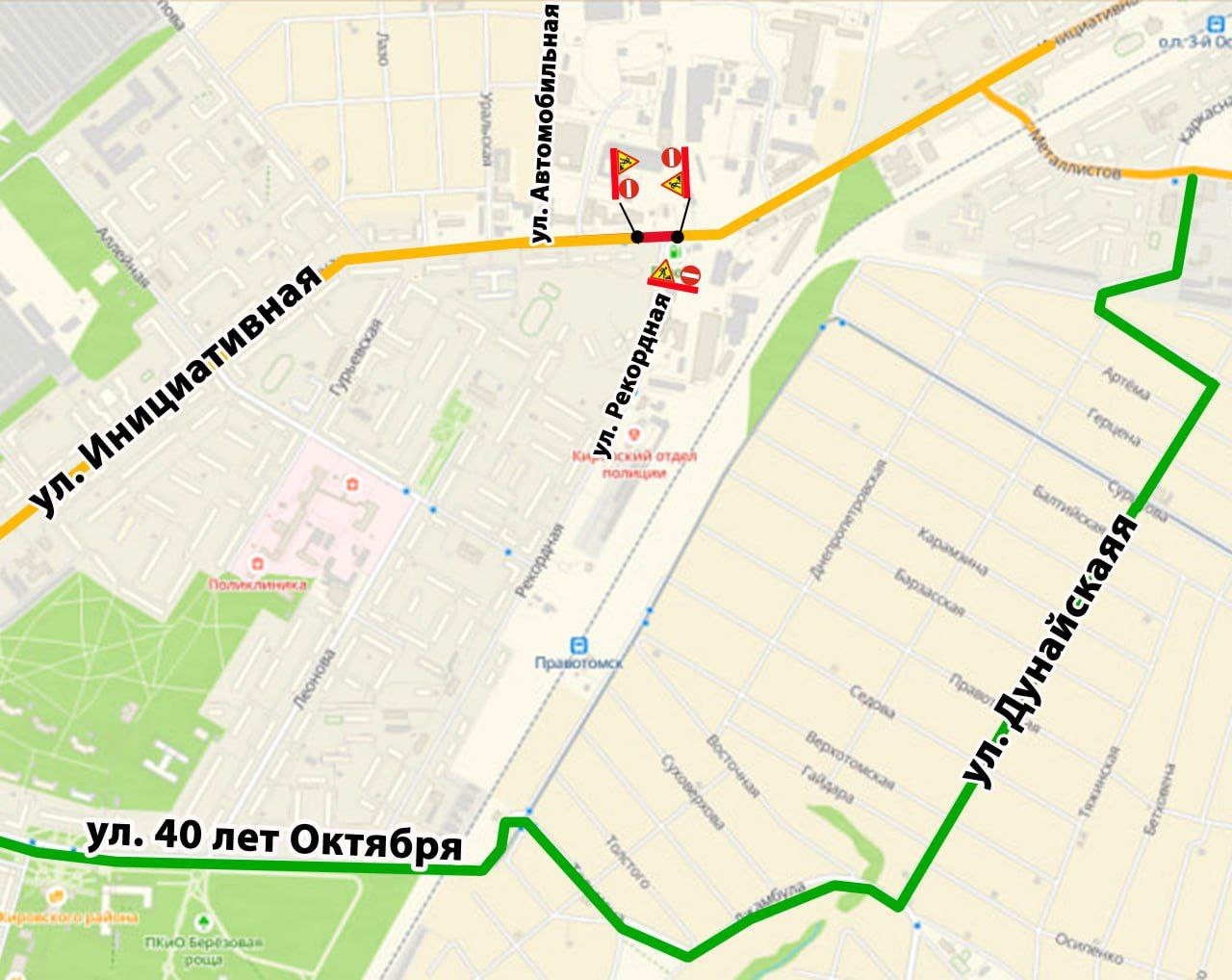 В Кемерове почти на 4 дня перекроют движение пересечение улицы Инициативной и улицы Рекордной. Эти изменения нужны для устройства канализации и защиты тепловых сетей, рассказали в мэрии Кемерова.