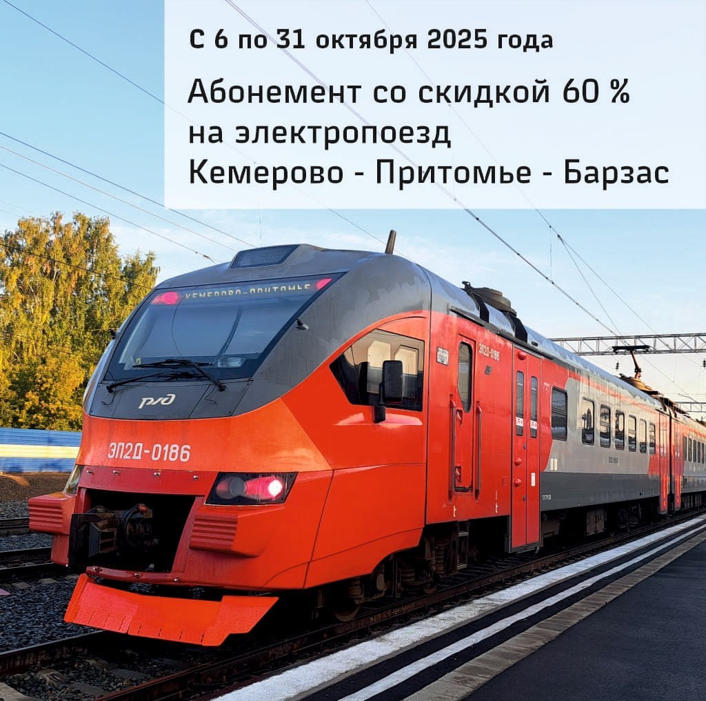 В Кемерове горожанам предложили поездки на электричке со скидкой в 60%. Как заявили в мэрии города, скидка дается только для маршрута Кемерово — Притомье — Барзас.