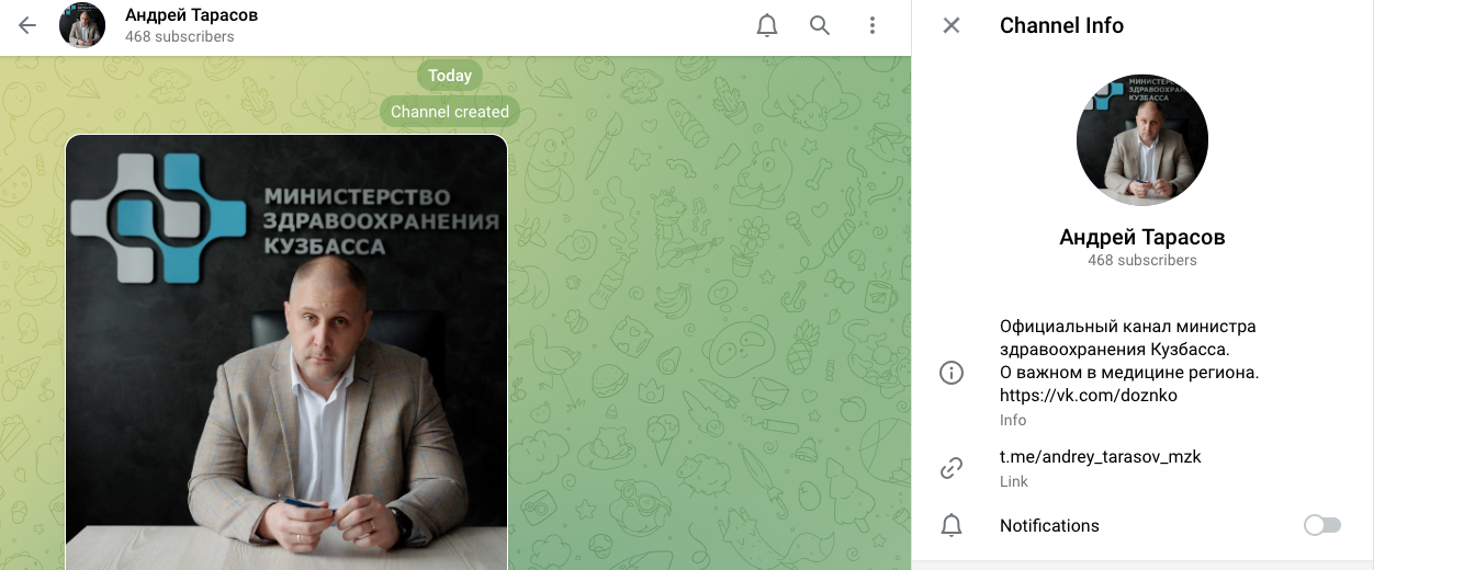 Новый министр здравоохранения Кузбасса Андрей Тарасов создал телеграм-канал. В своем официальном канале он будет рассказывать новости о медицине в регионе, а также отвечать на вопросы кузбассовцев.