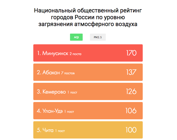 Инициатор проекта объяснил Сибдепо, что рейтинг формируется по показателю AQI ( от англ., – air quality index – международный индекс качества воздуха) в режиме реального времени. Данные в рейтинг поступают с датчика, которые установили сами «зелёные».