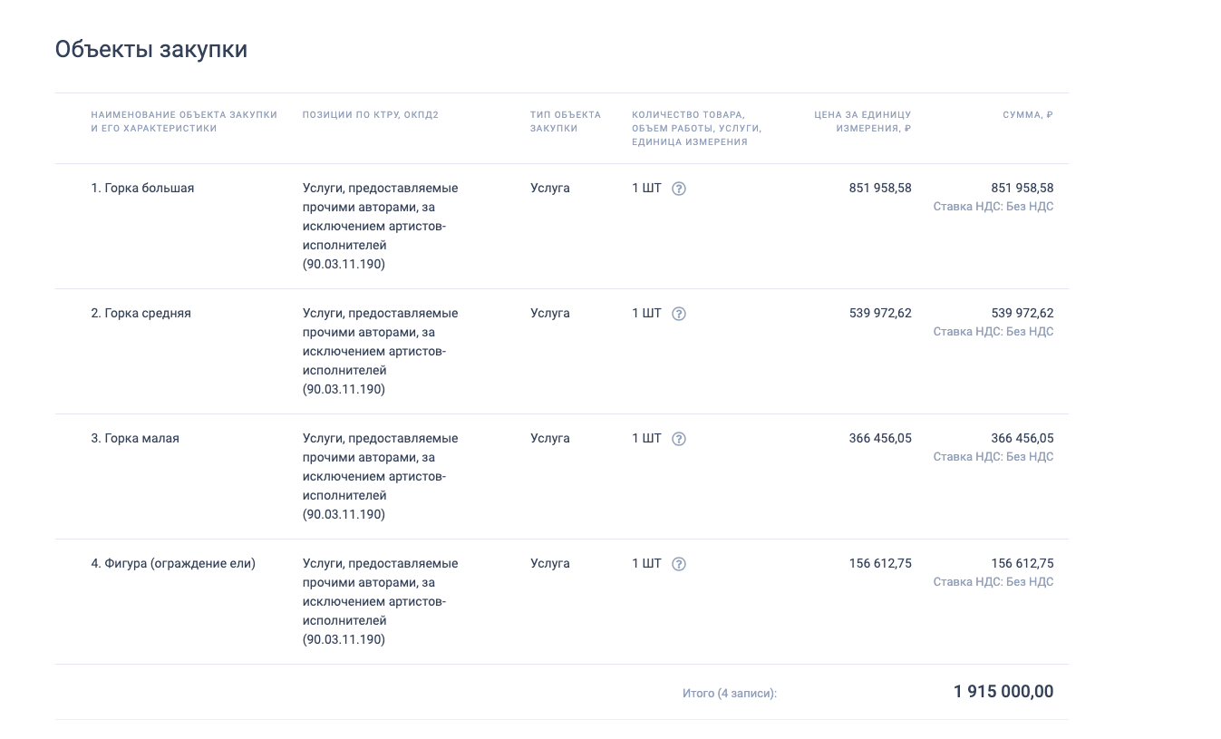 В договоре говорится, что подрядчик на эту сумму должен будет возвести в Кировском районе города три горки — большую, среднюю и маленькую. Также в задачу работников входит соорудить ограждение ели.