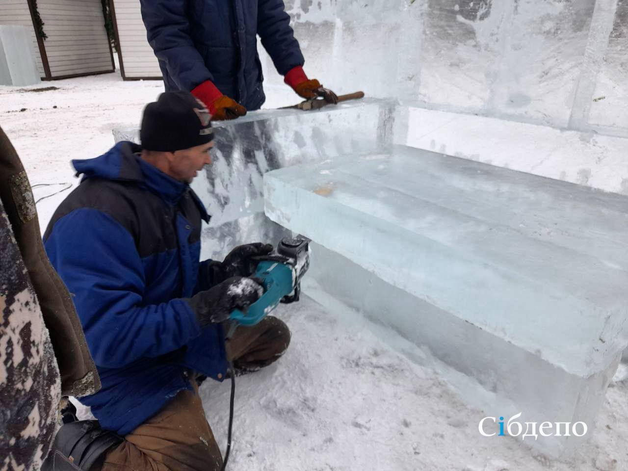 На площадь Советов в Кемерове привезли огромные кубики льда. Сегодня, 3 декабря, завезли первую партию льда для строительства ледового городка. Сейчас их подготавливают к работе.