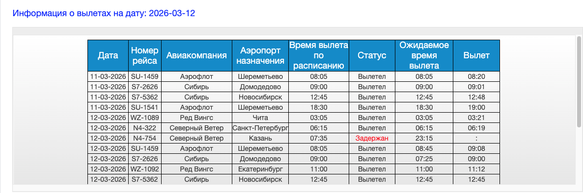 Вылет самолета из аэропорта Новокузнецка в Казань отложили на несколько часов. Сегодня, 12 марта, рейс перенесли с 7:35 на 23:15 часов вечера. Об этом гласит онлайн-табло аэропорта.