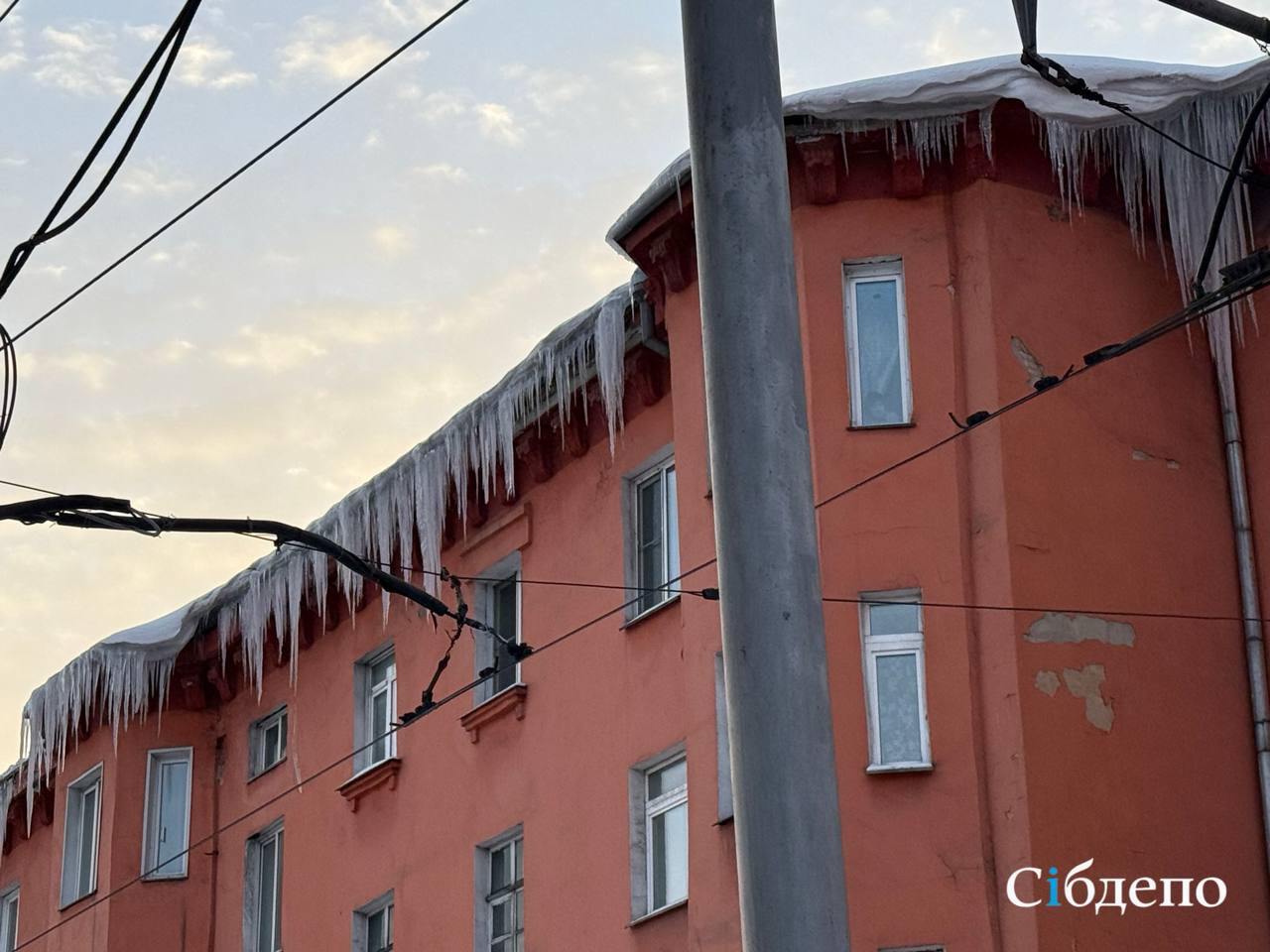 В Прокопьевске город оброс ледяными клыками, которые свисают над головами горожан. Огромные сосульки пугают местных жителей с декабря, сообщила горожанка редакции Сибдепо.
