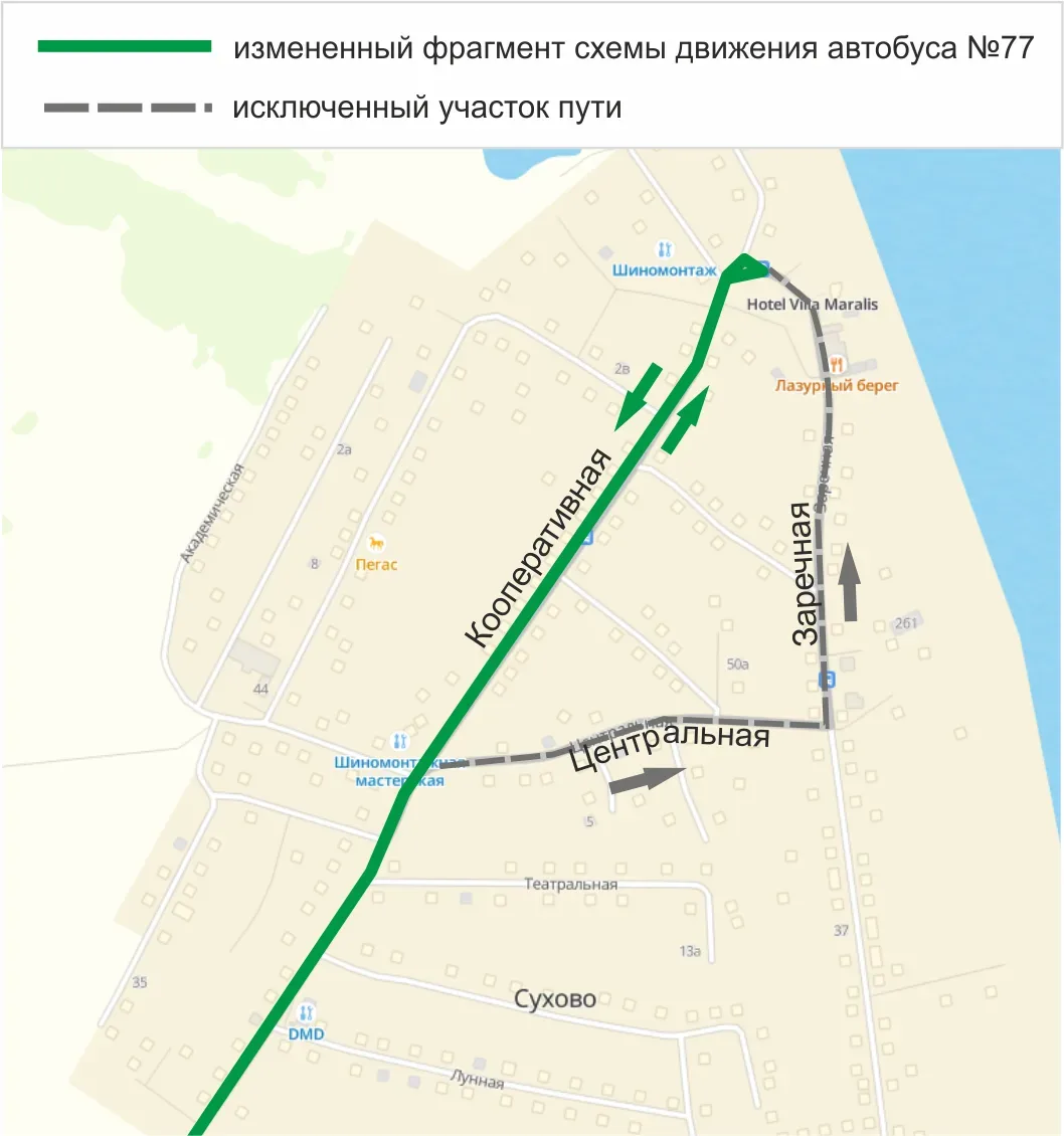 Причиной изменений стали аварийные работы водопроводе по ул. Заречная, 1 д. Сухово. Проезд на этом участке дороги ограничили. Новую временную схему движения опубликовала мэрия.