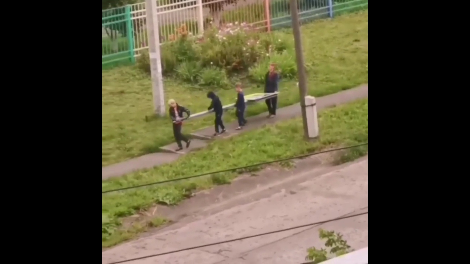 В Кемерове на улице Дегтярева местный житель запечатлел из окна своего дома, как четыре школьника куда-то несут знак пешеходного перехода вместе со стойкой. Автор кадров поинтересовался, куда именно, но участники хода ответили что-то не членораздельное.