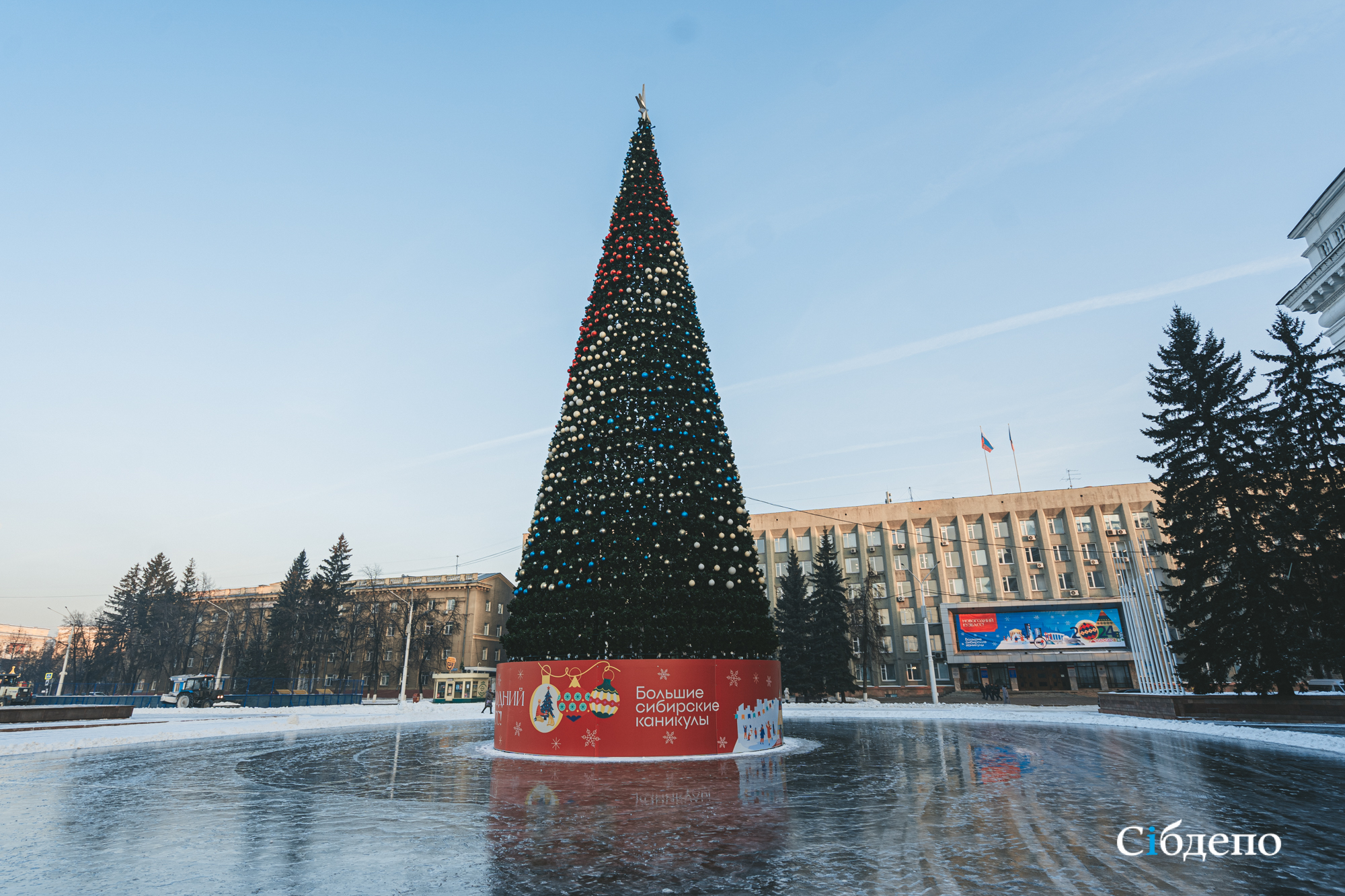 Ледовые катки тоже будут! Лед вокруг главной ели на площади Советов уже начали заливать. Если вспомнить прошлый год, то это было одним из самых излюбленных локаций как взрослых, так и юных горожан.