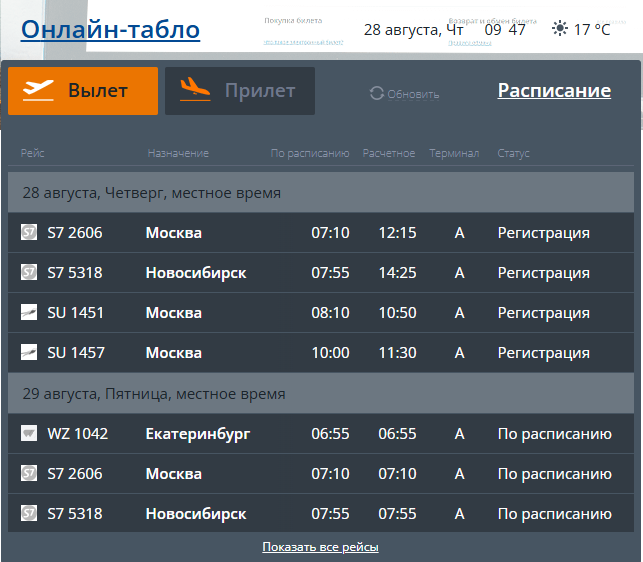 Прилет многих рейсов также задерживается достаточно сильно. Больше всего придется ждать россиянам, летящим с Новосибирска в Кемерово — целых шесть часов.